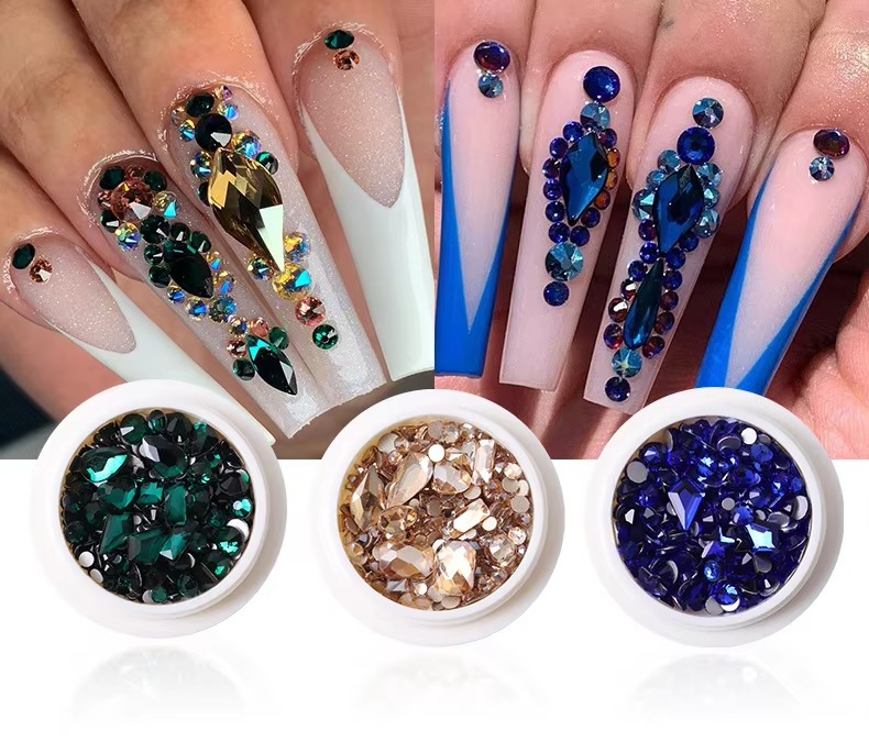 Most Popular in 2024 Multi-Shape Flat Colorful Round Crystal Rhinestones Mixed Sizes 3D Nail Rhinestones Wholesale
